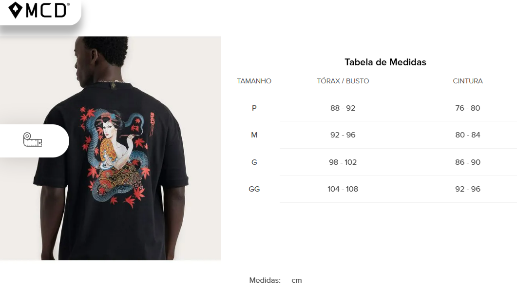 · Estampa MCD localizada no peito lateral.